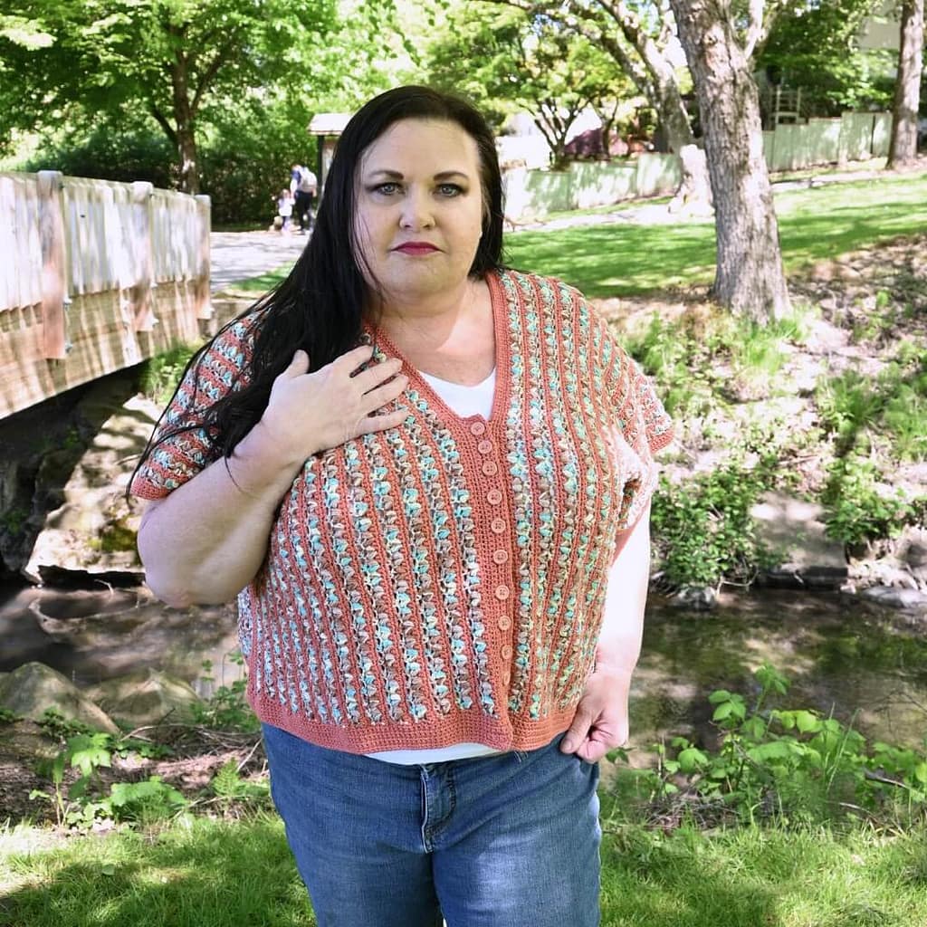 Inside – Today we’re talking to crochet designer Cristina Diaz, who contributed the Buttoned Up Preppy Crop crochet pattern featured in our August 2024 issue.