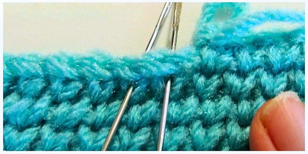 double chain 2 (dch2): Insert hook in st, yo, pull up a loop (2 loops on hook), yo, pull through both loops, insert hook in left (right if left-handed) vertical loop of st part just made, yo, pull up a loop (2 loops on hook), yo, pull through both loops.