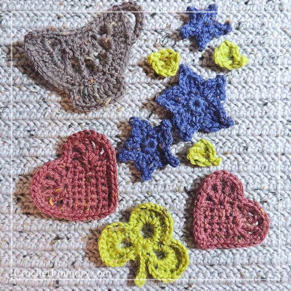 Appliques are a great way to use some of those smaller amounts of gorgeous yarn hiding in your stash. They can be used to adorn jackets and other clothing items, bags, hats, mobiles, all sorts of home décor, and so much more. So next time you have just 5-10 yards left of the most stunning yarn ever, make a tea cup or heart applique with it and share the beauty.
