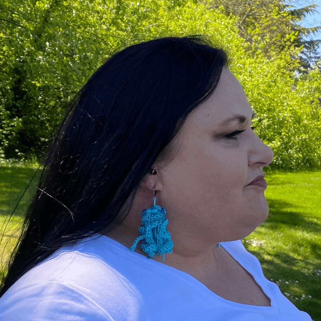 Honestly one of the hardest parts was making them small enough to be reasonable sizes earrings! Crochet grows fast, so I had to think about how to create a lot of texture fast!
