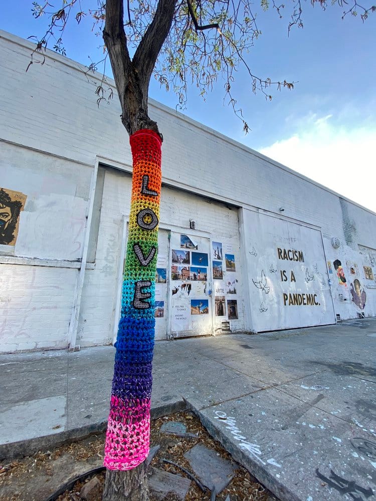 Love Across The USA is a public art project I lead, involving a wonderful community of over 1,200 crocheters from around the world. We create large, impactful crochet art installations that celebrate the voices and visions of influential women. Originally founded by Olek, she passed the project to me in 2020. The first mural I led was a 20-foot by 40-foot depiction of Kamala Harris, which was hung in Washington DC on International Women’s Day 2021. It is such an empowering experience to be a part of something larger than any one person can do on their own. If you would like to join, beginner through advanced crocheters are welcome. Go to www.LoveAcrosstheUSA.org to get notified when we do our next project!